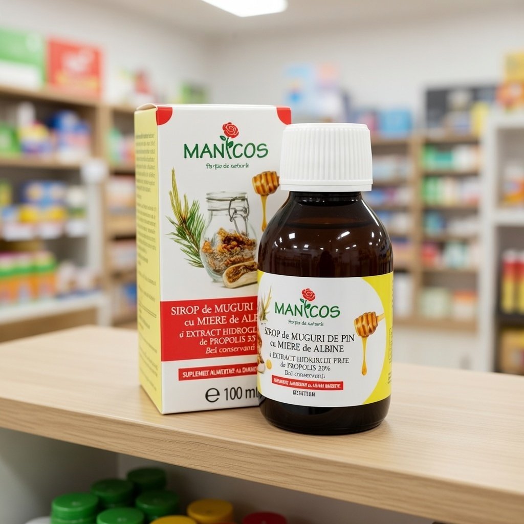 Ingrediente pentru 100 g produs: sirop de zahar invertit, extract hidrogliceric de muguri de Pin (Turiones pini) (corespunde unei cantitati de planta de 4.54 g si unei cantitati de glicerina vegetala de 6.82 g), miere de albine (7.50 g), extract hidrogliceric de propolis 33% (corespunde unei cantitati de propolis de 0.67 g si unei cantitati de glicerina vegetala de 1.20 g), acid lactic (acidifiant). Notificare SNPMAPS: 9715/2016.